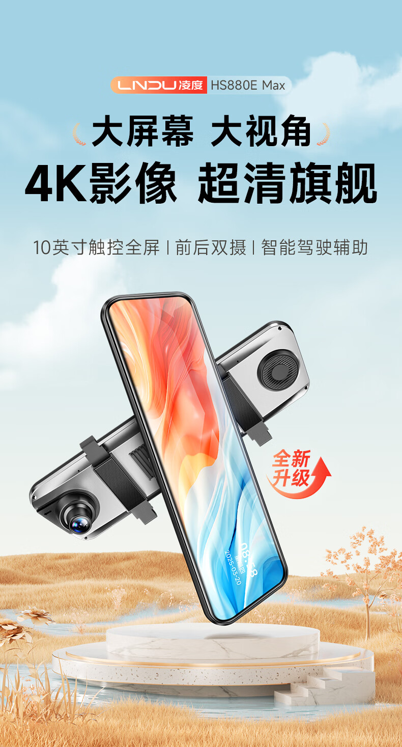 凌度行车记录仪HS880E MAX流媒体前后双录4K高清夜视 AI辅助驾驶BSD