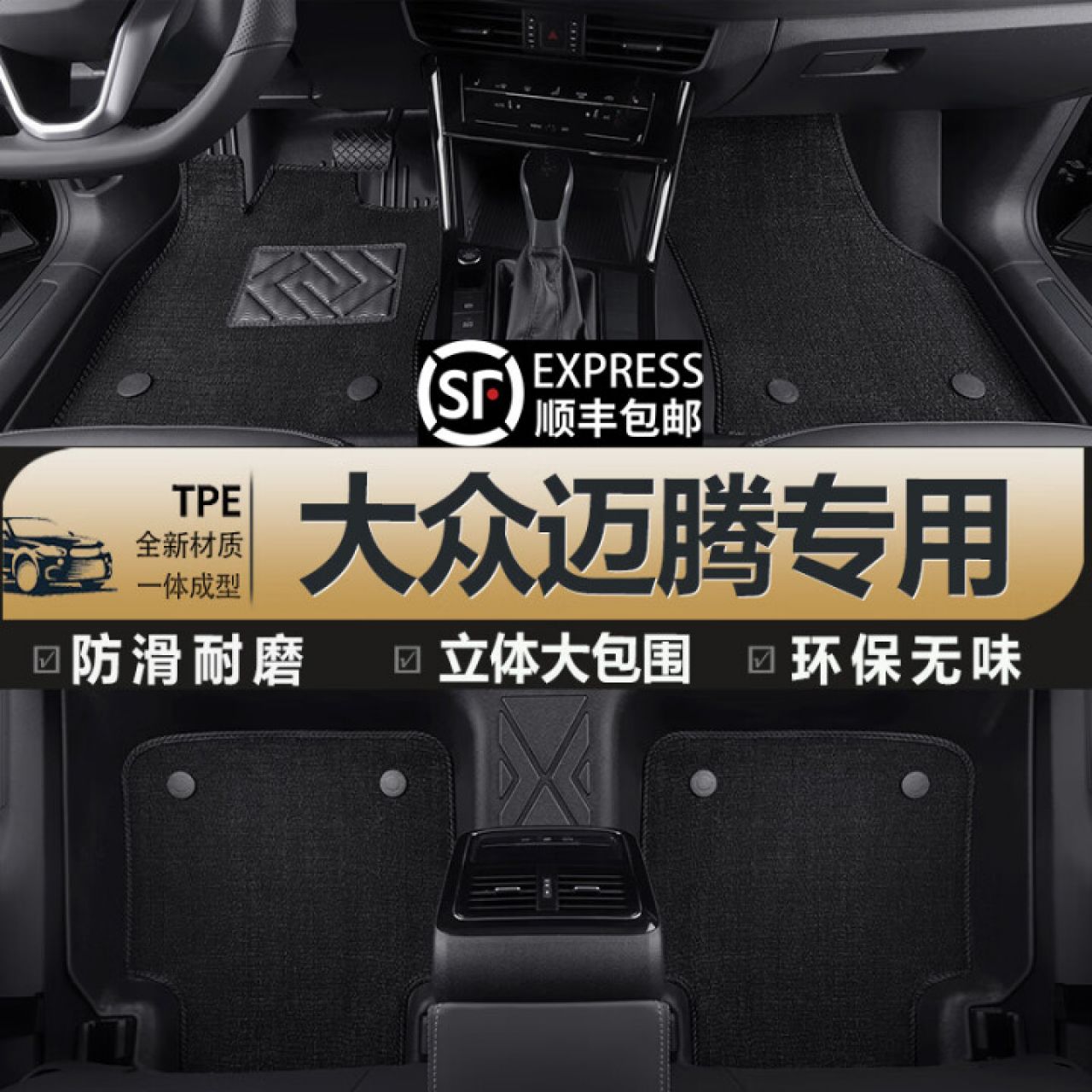 狮卡迪适用一汽大众迈腾汽车脚垫TPE全大包围24款 专用原厂尺寸 双层-TPE脚垫+黑色雪妮丝