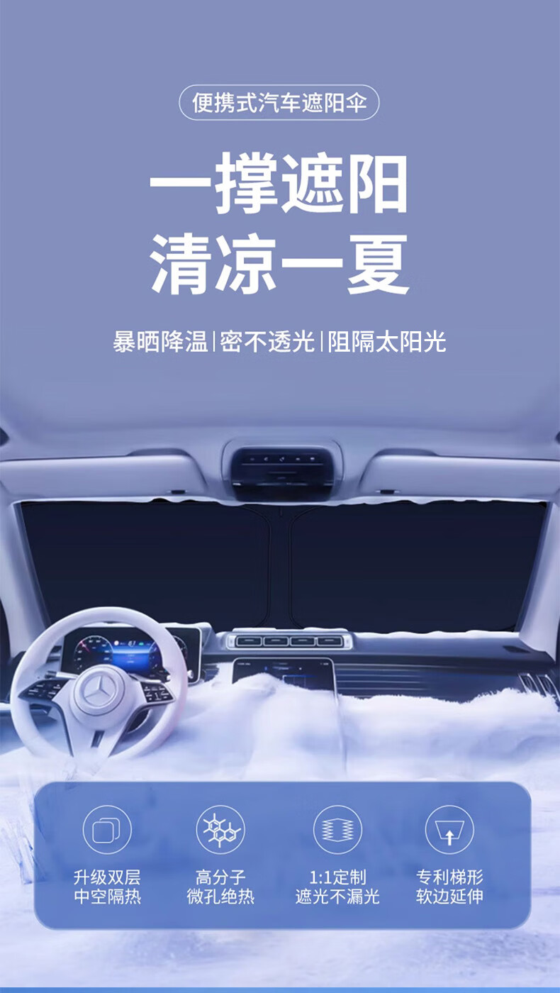 汽车遮阳帘前挡遮阳伞隔热防晒罩车用遮阳板遮光帘前挡风遮阳罩 双层超厚顶配款