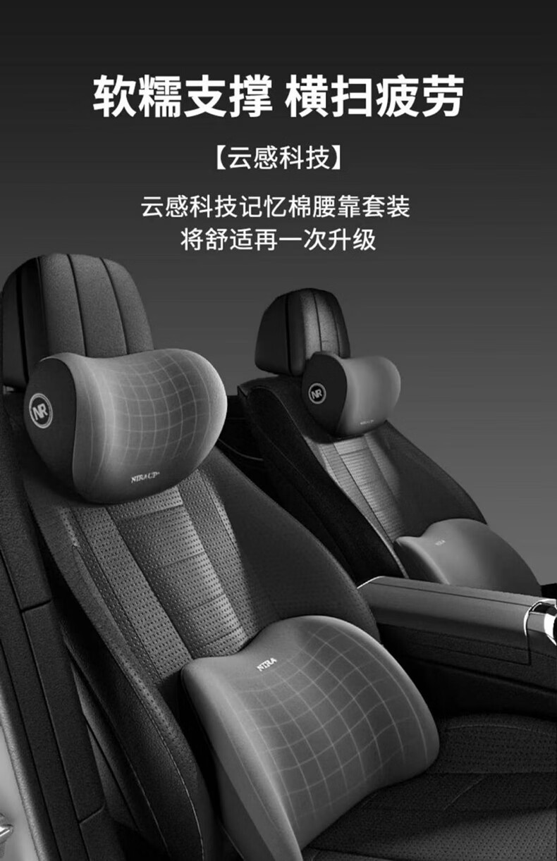 紫风铃汽车头枕腰靠颈椎枕汽车枕头护颈枕汽车靠背腰垫靠枕腰垫护腰 头枕腰靠套装【神秘黑】1套 柔软舒适