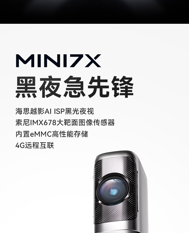 盯盯拍行车记录仪MINI7X 4K黑光夜视 内置存储 停车监控线+4G支架套餐